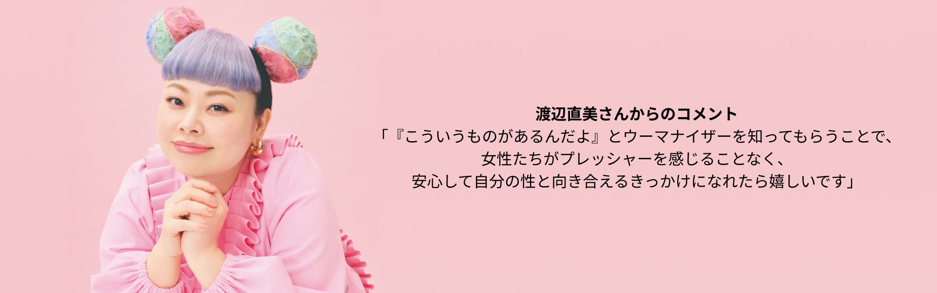 セルフプレジャーは、わたしたちの体と心の健康につながる大切なセルフケアのひとつです。今回の渡辺直美さんとウーマナイザーのコラボレーションは、恐怖や罪悪感、プレッシャーを感じることなく、女性たちが安心して、それぞれのペースで自身の性と向き合うきっかけになってほしいという想いが込められています。